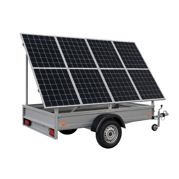 Remorca este echipată cu 4 panouri fotovoltaice de înaltă eficiență, montate în structură V-shape, care asigură o producție optimă pe tot parcursul zilei.
